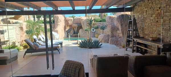 Perched high above the Coachella Valley, this one-of-a-kind hideaway offers a serene sanctuary where desert landscapes and refined luxury converge. Carved into the hillside, the spa feels like a natural extension of its surroundings, with sweeping valley views that instantly slow the pace and quiet the mind. Earthy stone and warm wood anchor the contemporary design, creating an atmosphere that feels both elegant and deeply rooted in place.