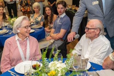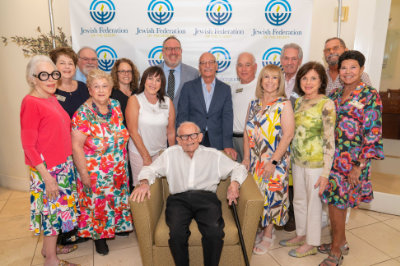 Among those in attendance were prominent members of the Federation and community, including Carol Fragen, Fran Kaufman, Barry Fisher, Stephanie Ross, Wendy Brooks, Nina Zale, CEO Danny Labin, President Arnie Gillman, Barry Kaiman, Nadine Brinhendler, Bill Chunowitz, Jackie Cohen, Scot Karp, and Margie Kulp, with Sherwyn Turbow seated at the center of the celebration.